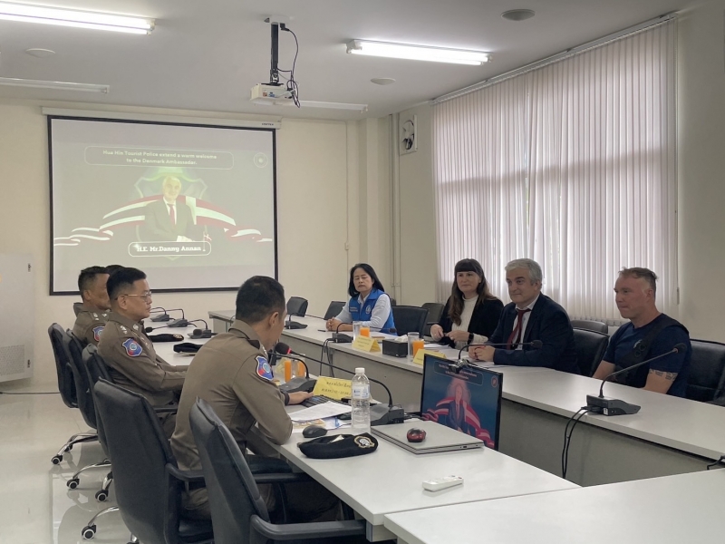 พร้อมด้วย คุณมลธิรา สีเมฆ เจ้าหน้าที่ประสานงานด้านการท่องเที่ยว จากศูนย์ช่วยเหลือนักท่องเที่ยวจังหวัดประจวบคีรีขันธ์ และอาสาสมัครตำรวจท่องเที่ยวหัวหิน ให้การต้อนรับ H.E. Mr.Danny Annan เอกอัครราชทูต ประเทศเดนมาร์ก ประจำประเทศไทย มาปรึกษาหารือเกี่ยวกับนักท่องเที่ยวในพื้นที่หัวหิน ถึงแนวทางการช่วยเหลือและให้บริการของตำรวจท่องเที่ยว